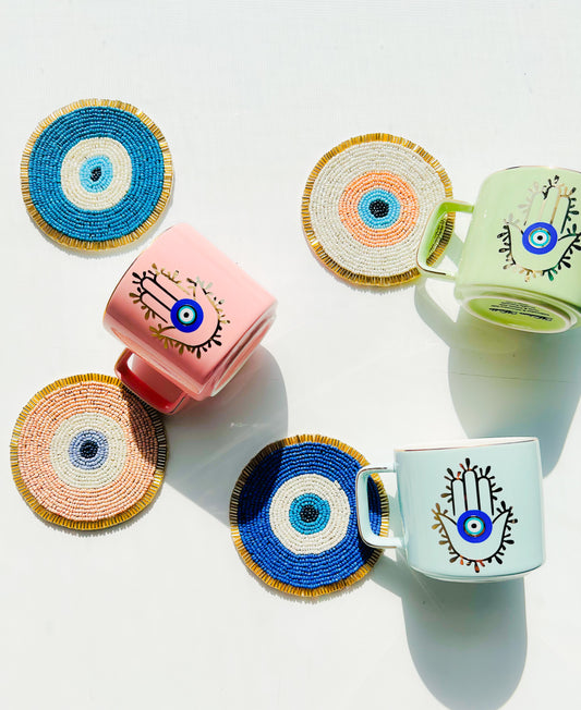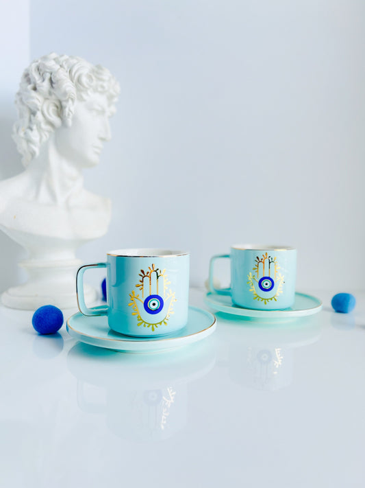 Hamsa Hand Espresso Cup and Saucer, Evil Eye Espresso Cup, Evil Eye Cup