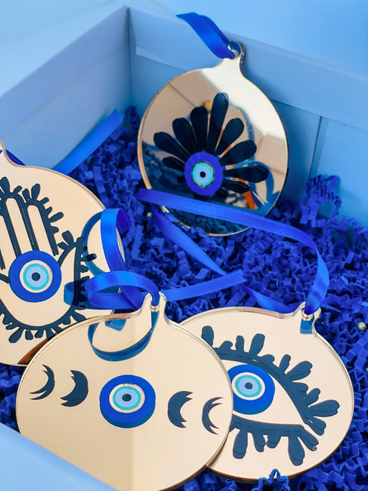 Evil Eye Mirrored Gold Ornament, Evil Eye Ornament, Gold Ornament, Mirror Ornament