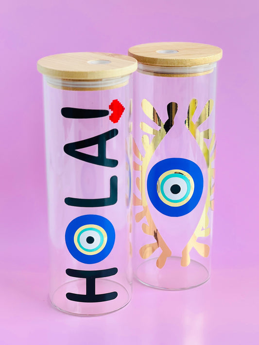Amida Cylinder Glass Tumbler With Bamboo Lid
