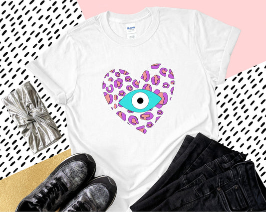 Evil Eye Design Good Vibes With Zebra Print Heart Animal Print Tshirt Custom T shirt Custom Graphic Tees