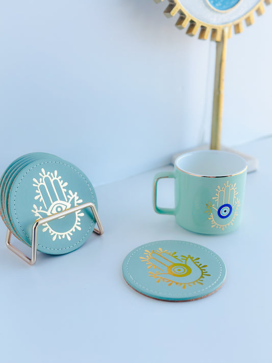 Evil Eye Beaded 4 Pieces Coasters Set