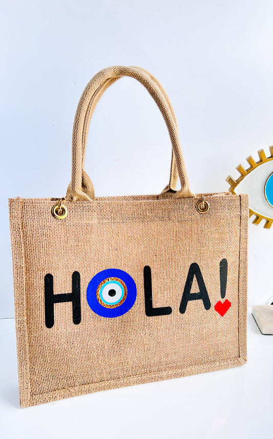 Hola Tote Burlap Bag
