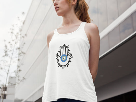 Hamsa Hand With Evil Eye Design Racer back Tank Top Custom Tank Top Evil Eye Tank Top