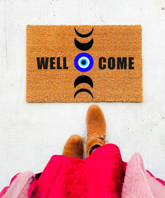 Evil Eye Welcome Moon Phases Doormat, Welcome Door mat, Moon Phases Doormat