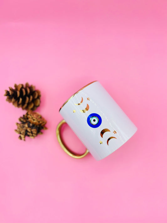 Gold Rim Evil Eye Ceramic Custom Mug