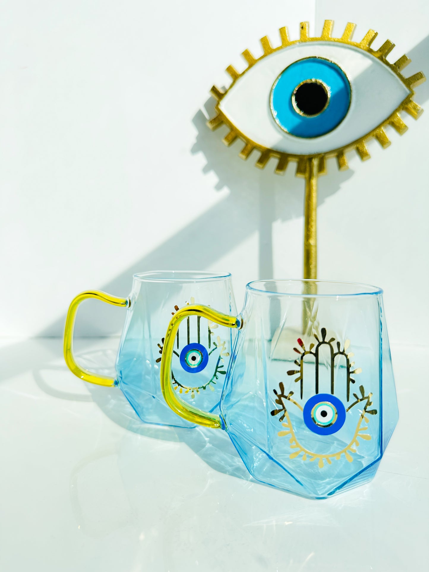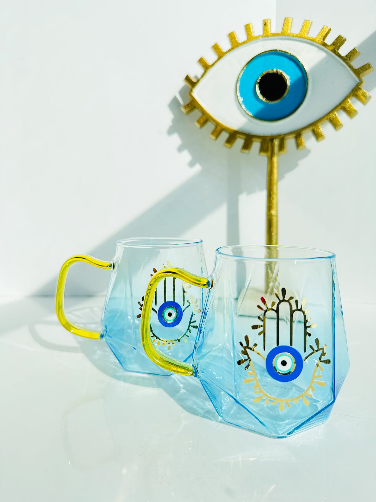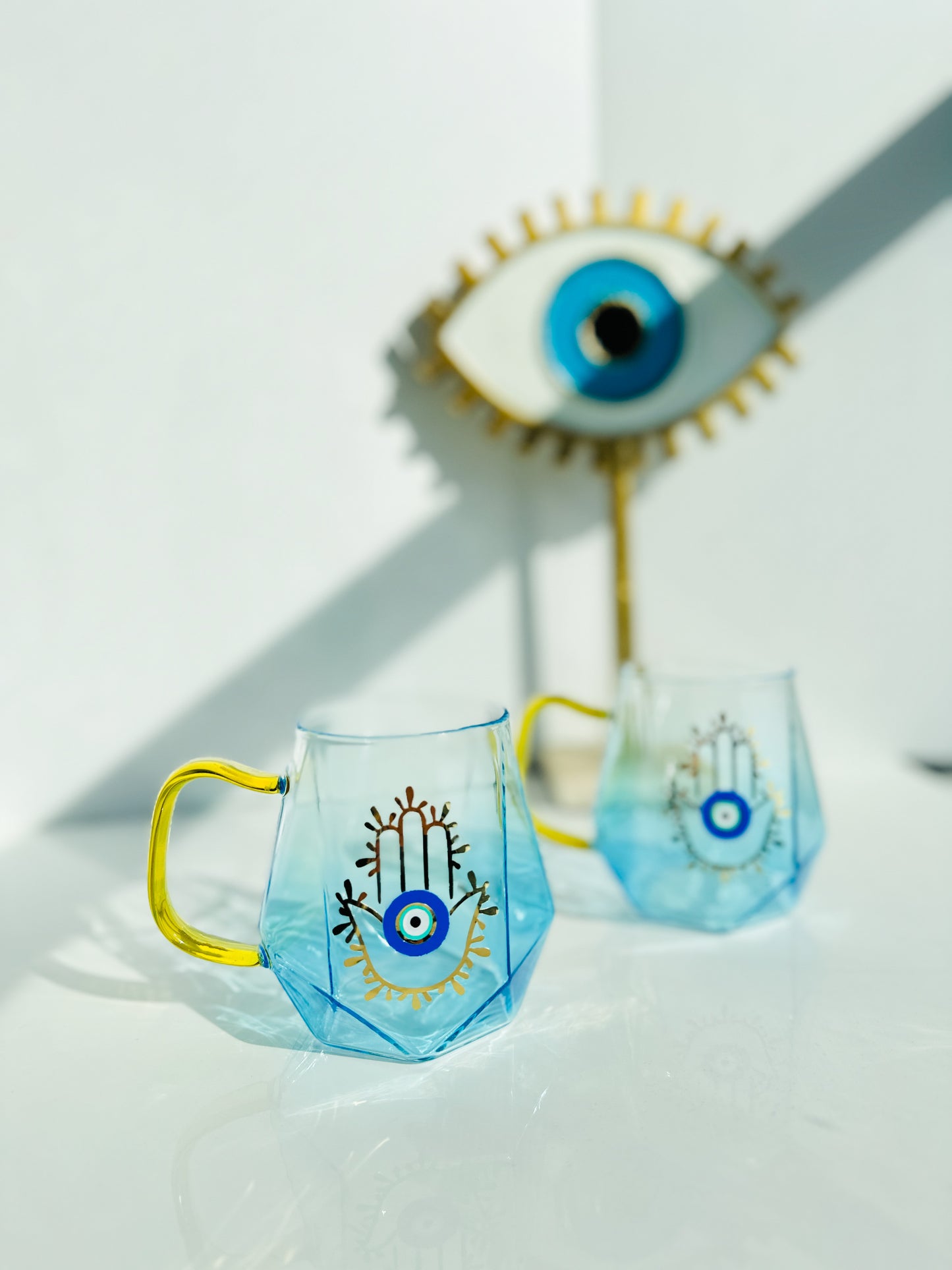 Hamsa With Transparent Crystal Glass Coffe Cup Designed By Amida By Zaa