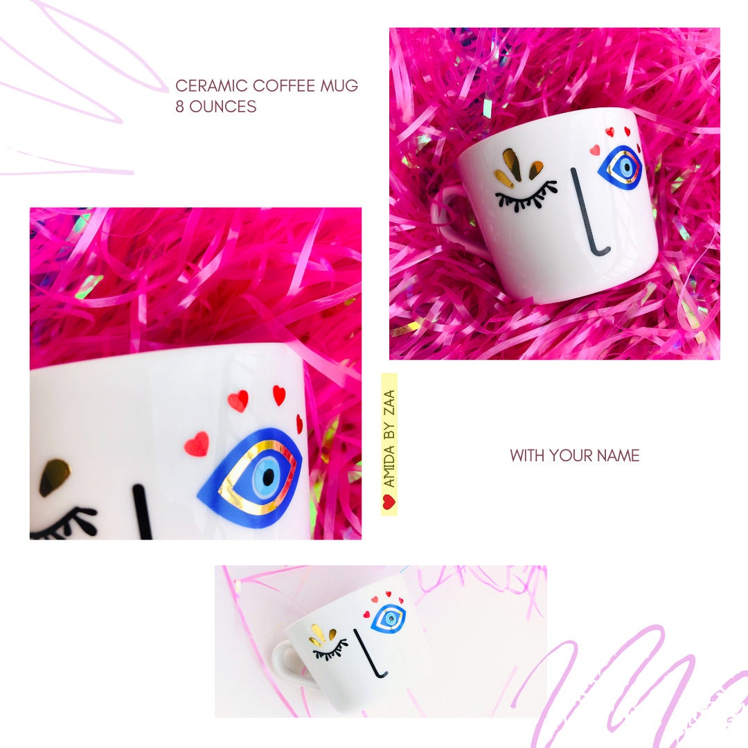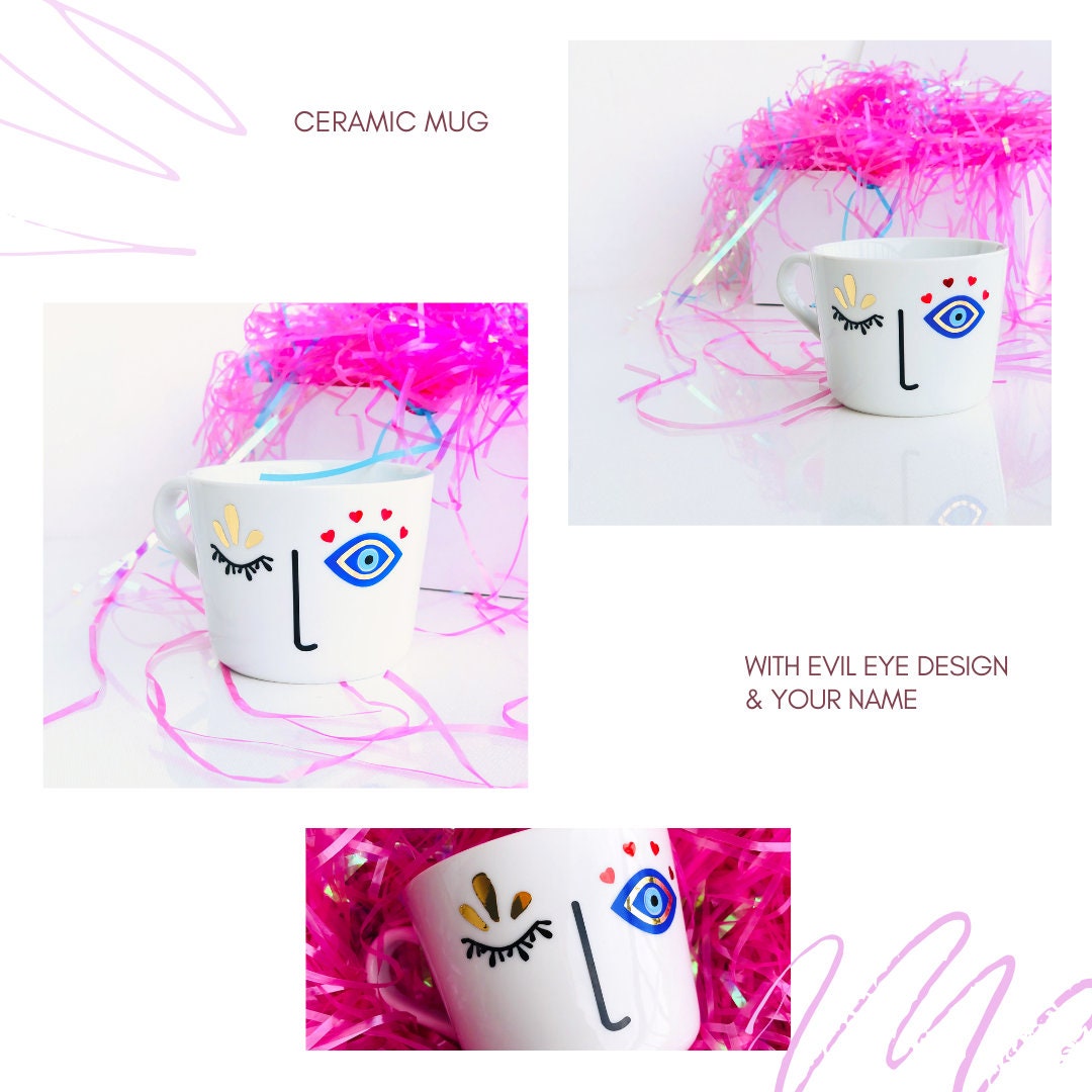 Evil Eye Design Personalized Mug Evin Mug Custom Gift With Your Name Ceramic Mug Evil Eye Charm Personalized Coffe Mug