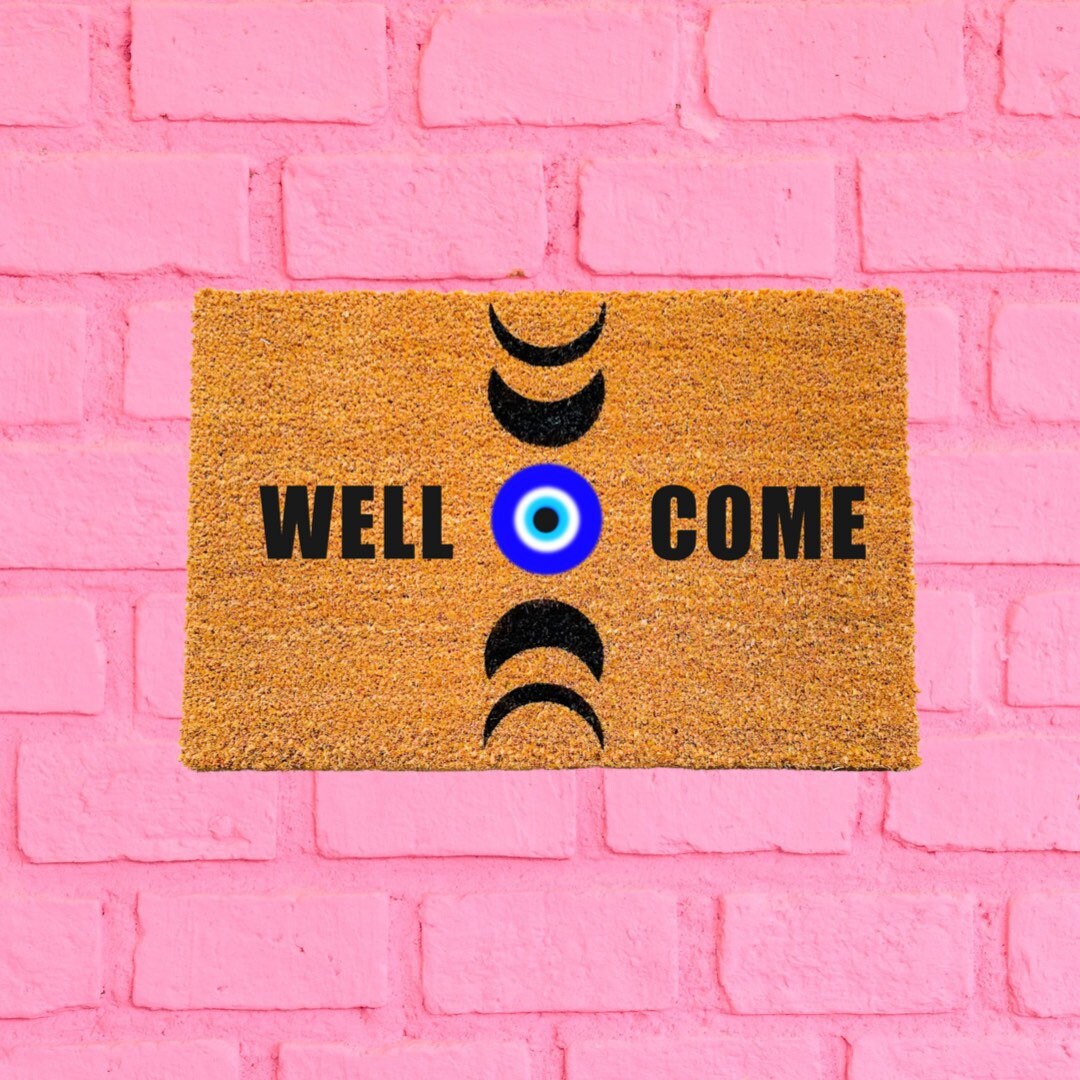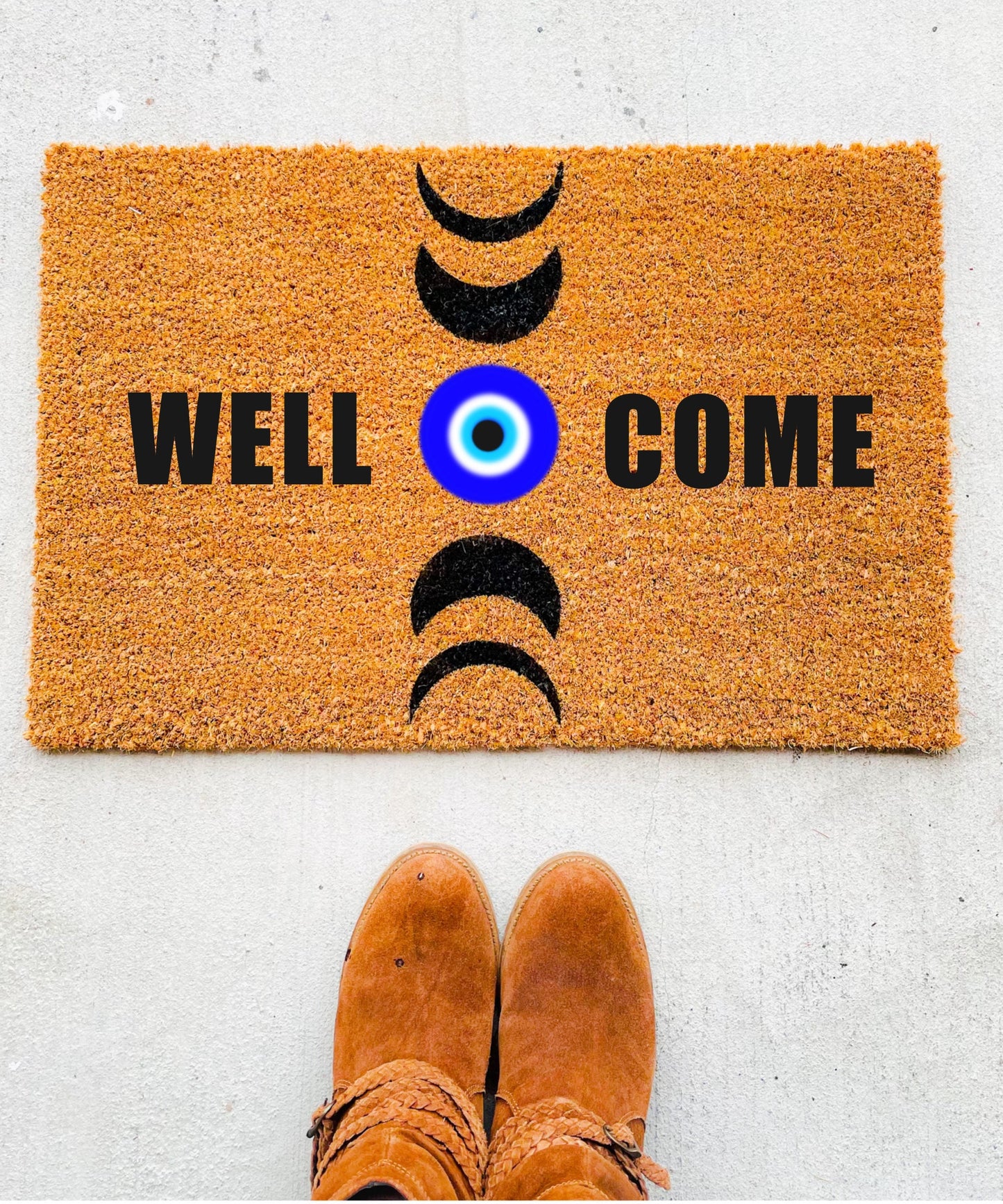 Evil Eye Welcome Moon Phases Doormat, Welcome Door mat, Moon Phases Doormat
