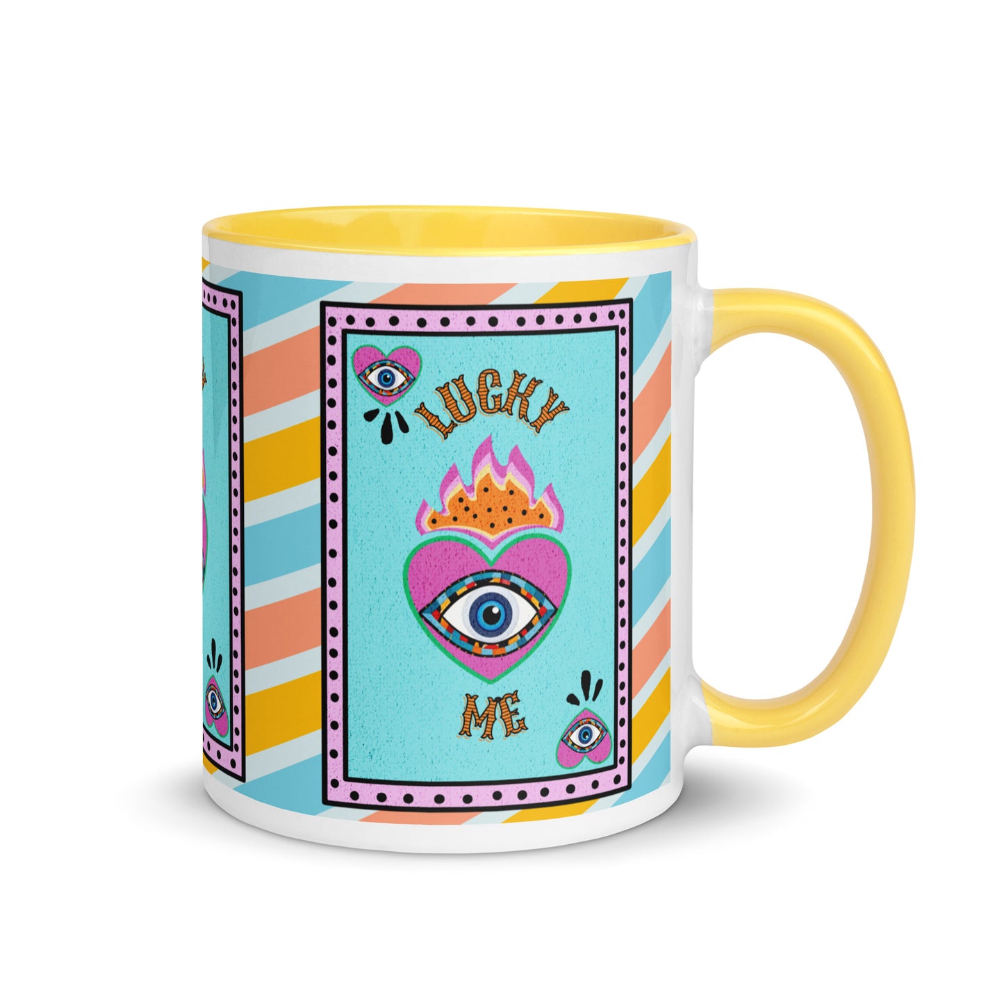 Add a splash of color to your morning coffee or tea ritual! These ceramic mugs not only have a beautiful design on them, but also a colorful rim, handle, and inside, so the mug is bound to spice up your mug rack.