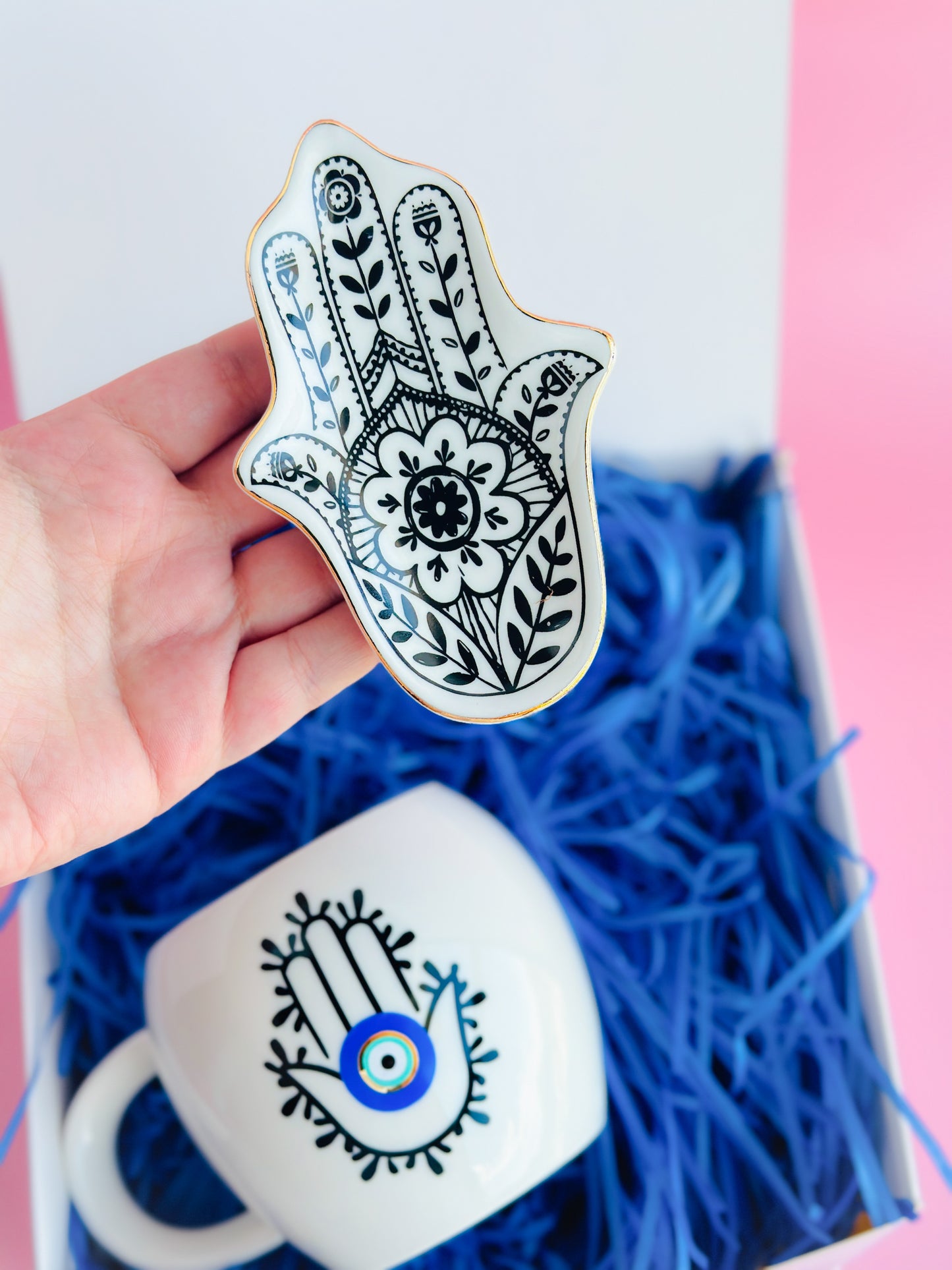 The hand of protection, known as Hamsa or the Hand of Fatima, is an ancient symbol of protection. This precious talisman has now been combined with the sacred Amida By Zaa© design to create an incredible set!